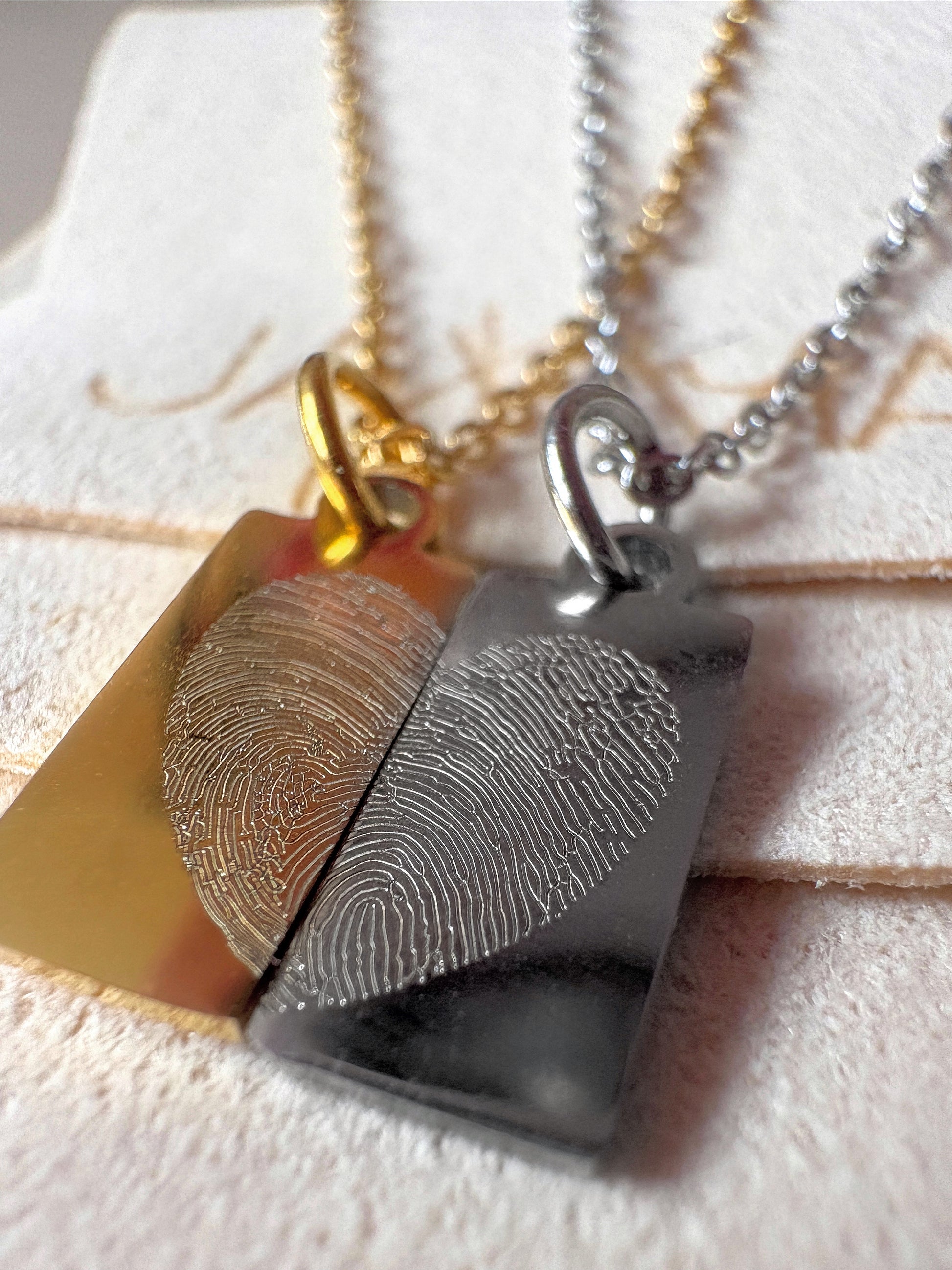 Halsketten Set mit Fingerabdrücken als Herz
